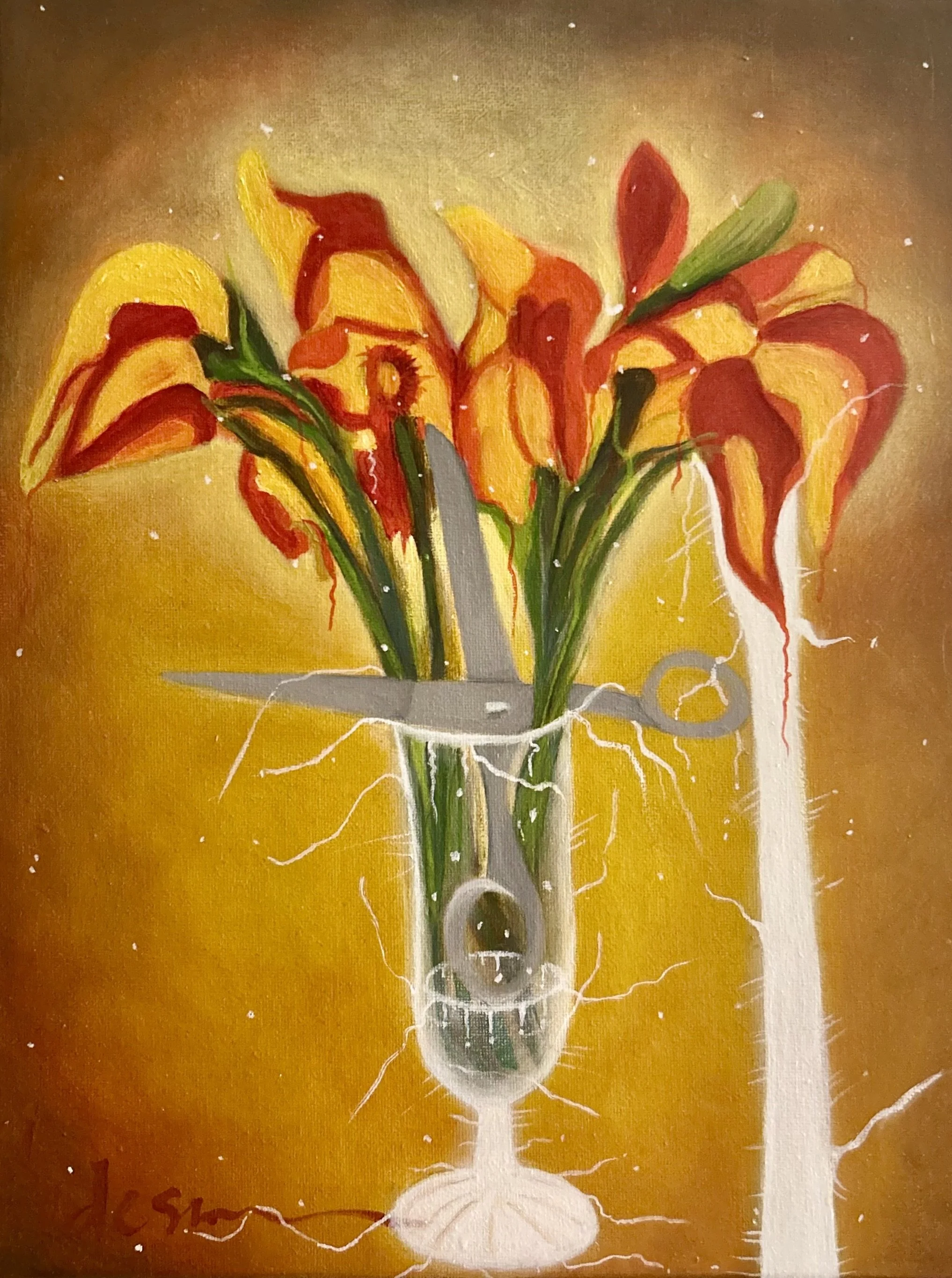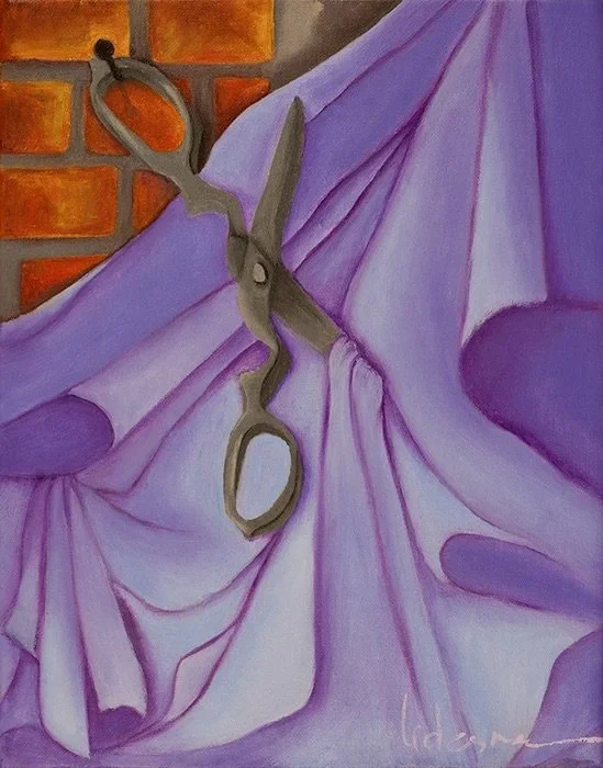 The Scissors Series (2023-2024) is a collection of oil paintings exploring the potent symbolism of scissors- tools that embody both the delicate act of creation and the decisive power of destruction.
